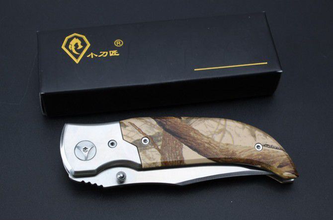 小刀匠ZD01折刀 全 长:205 柄 长:115 刃 厚:3.0 钢 材:7CR17 硬 度:57-58 表 面:钢原色 手 柄:披覆军迷彩 重 量:140克