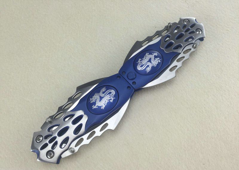 白眉蓝龙连环战术折刀(双刀) 全 长:19cm 刃 长:8.5cm 刃 厚:2.5mm 刃 材:420A 硬 度:56Hrc 表 面:电泳 柄 材:合金铝 净 重:242g 双刀 刀 套:无 锁 定:线锁 备 注:两把连接可拆