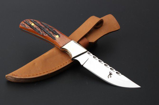 勃朗宁猎刀,一体龙骨结构,黄铜头,仿骨手柄,户外狩猎最佳选择!