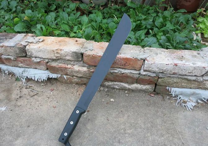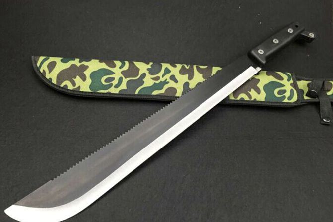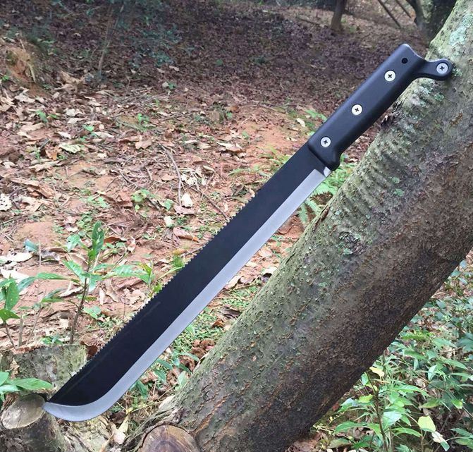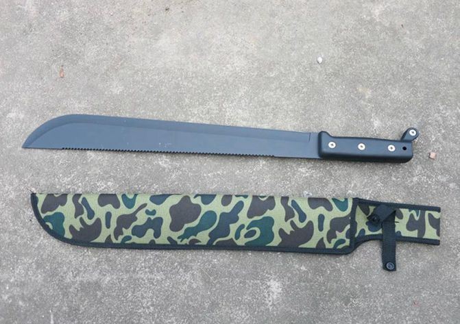 全 长:54CM 刃 长:42CM 刃 厚:3.5MM 刃 材:420不锈钢 硬 度:57HRC 重 量:580g 表 面:电泳 柄 材:ABS 刀 鞘:尼龙 种 类:黑白刃和全黑(购买时请注明种类)