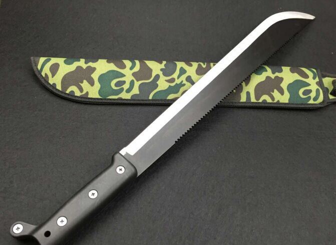 背齿开拓者野营刀 全 长:54CM 刃 长:42CM 刃 厚:3.5MM 刃 材:420不锈钢 硬 度:57HRC 重 量:580g 表 面:电泳 柄 材:ABS 刀 鞘:尼龙 种 类:黑白刃和全黑(购买时请注明种类)