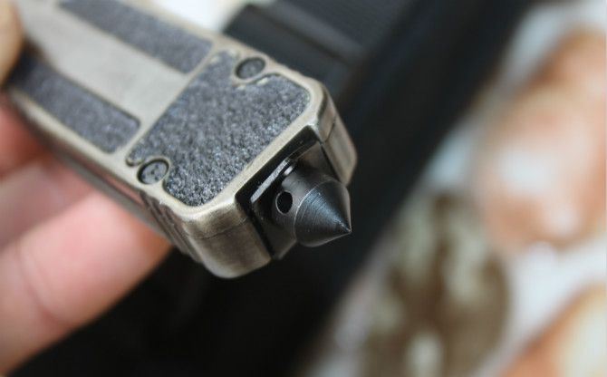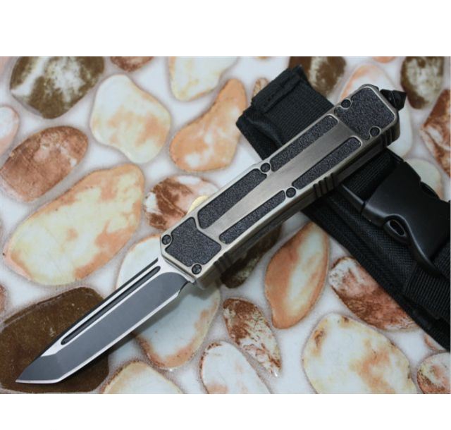 微技术圣甲虫单锋平头直跳(金色) 开启长度:22CM 合起长度:13.5CM 刃 厚:0.4CM 硬 度:57 HRC 刃 材:440c 表 面:氧化黑 把 手:航空铝合金+钢砂 净 重:200克(整刀) 毛 重:280克(含包装物) 开 合:双动作, 直推开关,自动弹出和收回(刀头比较牢固,只有很轻微的摇动) 包 装:耐磨专用战术尼龙套 口袋刀夹:弹簧刀夹 玻璃敲击器:钨质玻璃敲击器