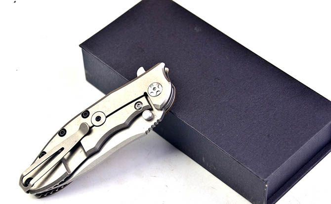 ZT零误差花样年华折刀 全 长:21.5cm 刃 长:9.0cm 柄 长:12.2cm 刃 宽:3.2cm(最宽处) 刃 厚:4.5mm 刃 材:D2高速钢 硬 度:60-62HRC 刀 柄:TC4钛合金(表面经石洗处理),加彩色G-10 表 面:灰钛 锁 式:侧锁 重 量:220克(含包装物) 备 注:钛合金背夹
