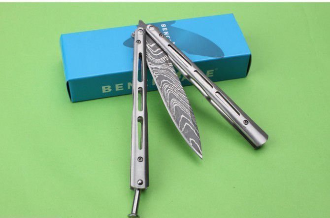 JL28蝴蝶甩刀 全 长:242mm 刃 长:100mm 柄 长:133mm 刃 宽:18mm 刃 厚:2.6mm 刃 材:3Cr13Mo 净 重:150克 重 量:213g(含包装) 硬 度:55HRC 表 面:腐蚀 柄 材:钢柄 其 他:配彩盒和尼龙套