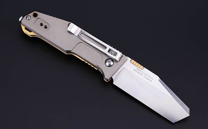 三刃木7046LTX战术折刀 【全长】16.3cm 【刃长】6.6cm 【刃宽】2.6cm 【刃厚】2.5mm 【刃材】8Cr14MoV 【表面】钢本色 【硬度】59HRC+ 【柄长】9.3cm 【柄材】8Cr14,灰色铝氧化+金钛(带有背夹) 【重量】93克(含包装) 【包装】彩盒 【锁型】无锁