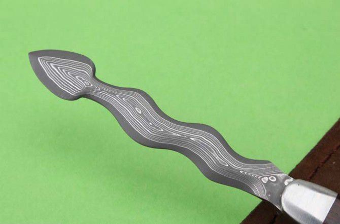 蛇形大马士革茶刀 刃材:日本进口大马士革钢 刃长:76mm 未开刃 柄长: 93mm 全长:168mm