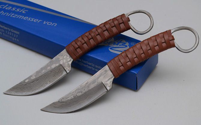 花纹钢绑皮爪刀 全 长: 21.5cm 刃 长: 8cm 刃 厚: 4.1mm 刃 宽: 2.7cm 刃 材: 440 柄 长: 12cm 硬 度: 57HRC 净 重: 120g 毛 重: 171g(含皮套及包装) 表 面: 仿大马士革