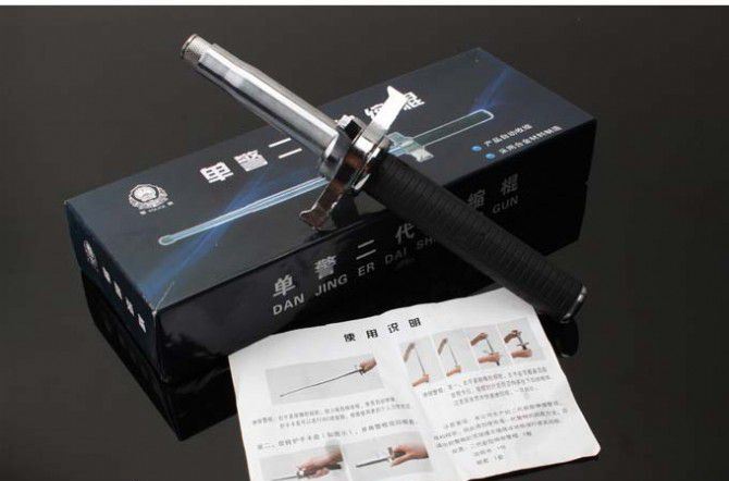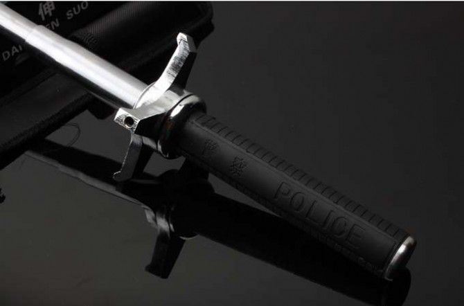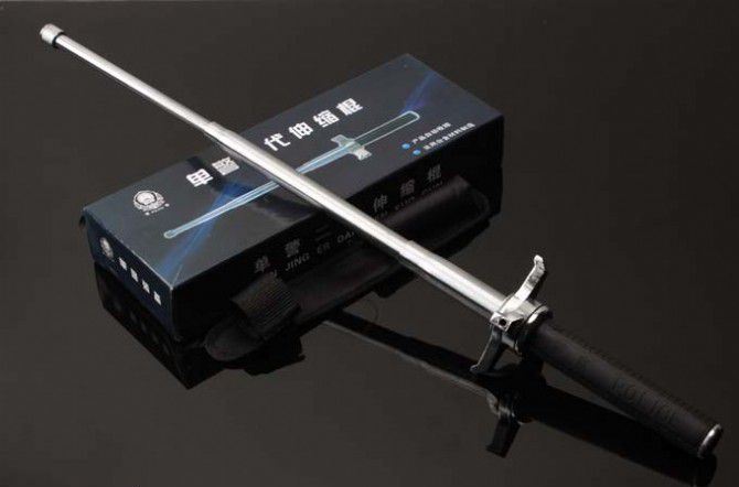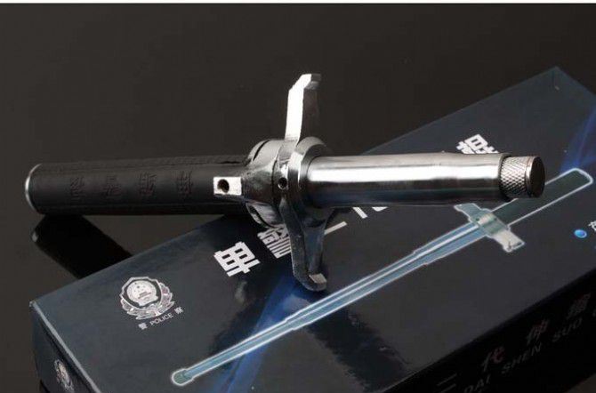 带护手功能,能有效防止刀具、棍棒等袭击;收缩纯机械设置,方便自如