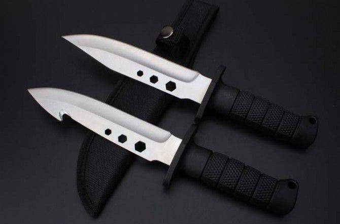 狐狸装备救援刀(带钩、通用版) 全长:28.8cm 刃长:15.5cm 柄长:11.8cm 刃宽:3.5cm(最宽处) 刃厚:0.42cm 刃材:440C 硬度:56HRC 表面:沙光 柄材:ABS 总重:320克(含刀套彩金)