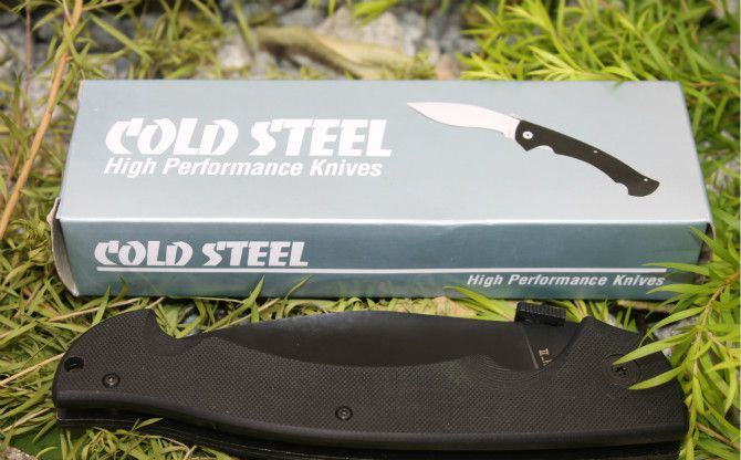 冷钢COLD大狗腿折刀(全黑版) 全长:27.2cm 刃长:12cm 柄长:15.cm 刃厚:0.36cm 刃宽: 3.2cm 刃材: 5CR15MOV 柄材: 黑色G10 硬度: 56HRC 净重:250克 锁定:线锁 表面处:全黑色
