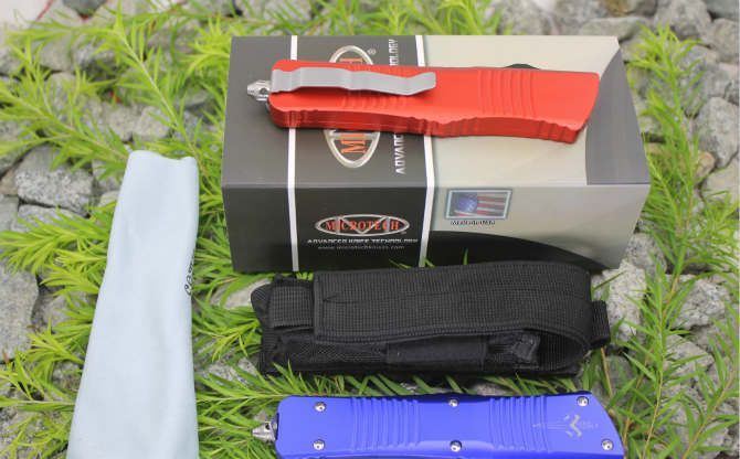 超精仿微技术暴龙直出弹簧刀(红色、蓝色柄)