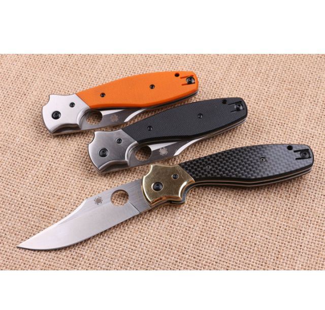 蜘蛛C39三色折刀(G10两色) 全 长:21.5cm 刃 长:9.5cm 柄 长:12.0cm 刃 宽:2.8cm 刃 厚:2.9cm 刃 材:440 重 量:190g(含包装) 硬 度:56HRC 表 面:沙光伴拉丝 柄 材:加厚钢+G10 锁 型:侧锁