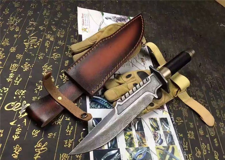 全 长:38.5CM 刃 长:25CM 柄 长:13.5CM 刀 厚:0.58CM 刃 面:腐蚀纹 毛 重:约600克(含刀鞘) 钢 材:9cr18mov钢 硬 度:59HRC(真空油冷热处理) 柄 材: 高档军绳