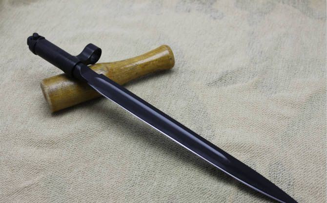 黑钛色国产56式扁形枪刺开刃版 材质:合金钢 硬度:60HRC 类型:军刀 全长:31厘米 厚度:0.5厘米 宽度:2.0厘米 产地:中国 此刀用合金钢锻压打造而成,钢材的硬度在60HRC以上。 整刀经过热处理,硬度极高,可穿透普通的防刺服。 刀身经过去光处理,刀身呈全黑色