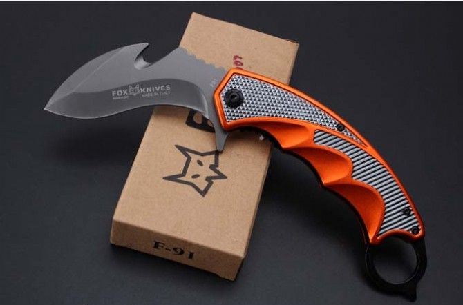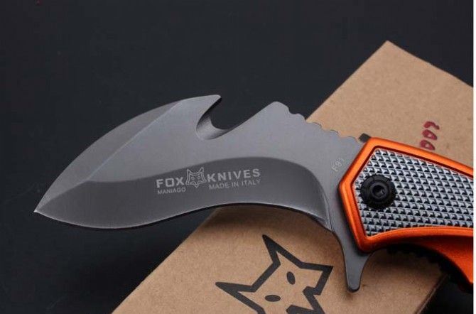 FOX狐狸F91快开全刃折刀 全 长:220mm 刃 长:82mm 柄 长:140mm 刃 宽:31mm 刃 厚:2.8mm 刃 材:5C515Mov 重 量:190 g(含包装) 硬 度:57HRC 表 面:灰钛 柄 材:钢柄+铝 锁 型:快开 其 他:配彩盒