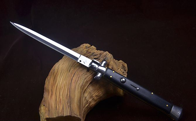 13寸黑手党侧跳刀彩木柄