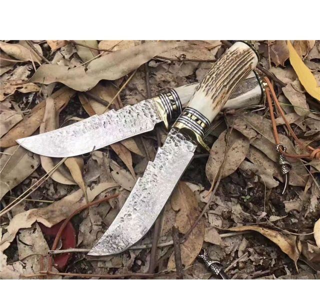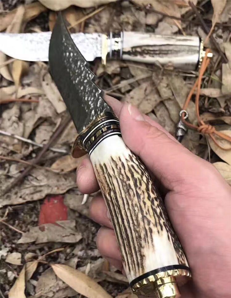 翼龙鹿角大马士革猎刀