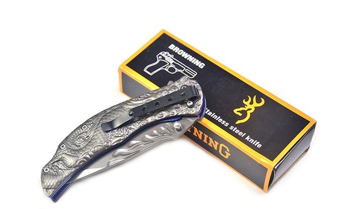 勃朗宁B063浮雕神龙灰钛快开折刀