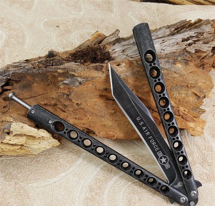 军标The One 黑鸟II一体柄蝴蝶甩刀全黑石洗