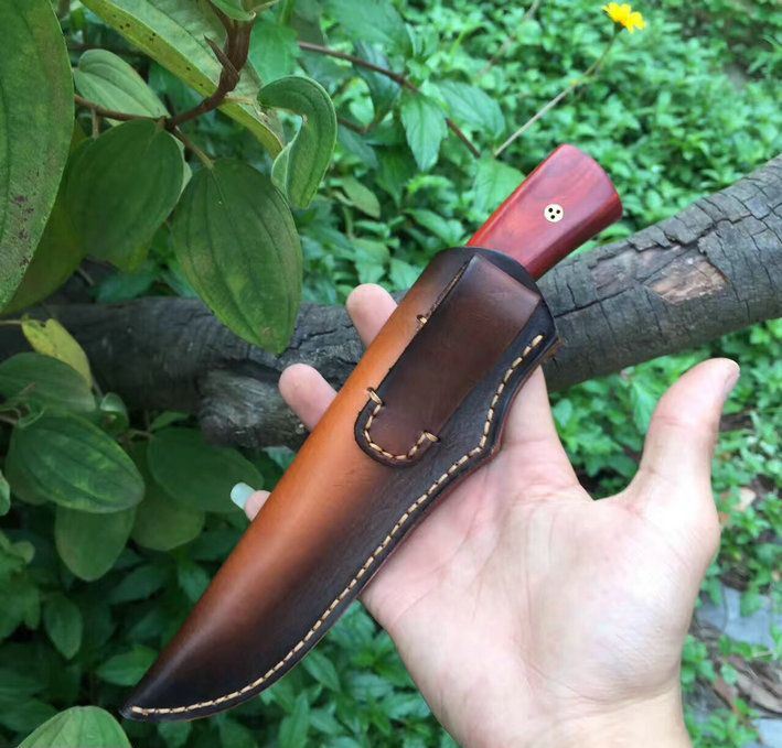 手柄材料:纯黄铜护手锻打凹凸粒保留+鲜红柯檀木