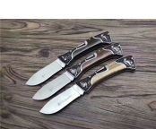 哥伦比亚A3206战术折刀 全 长:22.5cm 刃 长:10cm 柄 长:12.5cm 刃 宽:3.1cm 刃 厚:3cm 刃 材:7Cr13Mov 重 量:300g(含包装) 硬 度:58HRC 表 面:雕刻 柄 材:双钢头雕刻+黑檀 锁 型:背锁 包 装:纸盒+真皮套