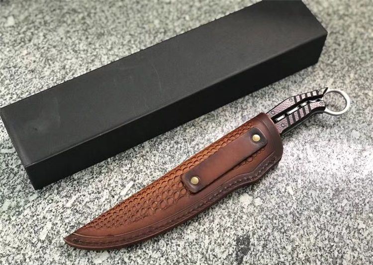 FOX狐狸Olamic Cutlery永恒刃具狩猎者直刀 刃刃材质:D2 刃具全长:30.4 CM 刃长:17.7 CM 刃厚:0.5 CM 刃宽:3.8 CM 硬度:58-60 HRC 柄材:碳纤 附件:植鞣头层雕花皮套 重量:288.5克