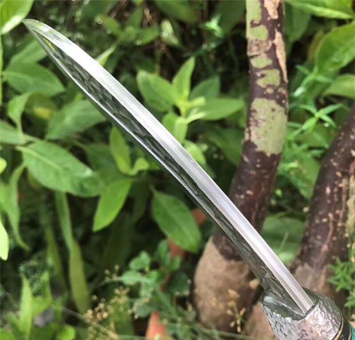 大马士革钢血刃狗腿刀 全长:26.5cm 刃长:14.5cm 柄长:12cm 刃厚:4.8cm 刃宽: 4.cm 刃材: 大马士革钢 柄材: 钢头+蓝松石黑檀木 硬度: 59HRC 净重:450克(含包装) 其他:皮套