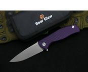 熊爪Hati95倒钩折刀 总长:222毫米 刀片长度:95 mm 手柄长度:127毫米 刀片厚度:4mm 刀片宽度:28.5毫米 刀刃:石洗 系统:陶瓷球轴承双排 硬度:59-60HRC 净重:117-118克 刀片材质:D2(100%实数D2,可以测试) 手柄材质:G10 + TC4钛,数控切割,成型工艺,减轻重量。 手柄表面:石洗