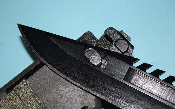 美军现役D80(黑全刃绿柄) 全 长: 32cm 刃 长: 19.8cm 刃 厚: 5.9mm 刃 材: 4CR13 硬 度: 56HRC 重 量: 刀410g+鞘380g 表 面: 发黑 柄 材: ABS 刀 鞘: ABS