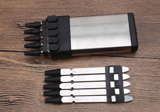 新版防卫镖(五支装) 规格:CM15.4X4.5X2 另配单支镖5支后面带指南针 最远射程10米左右。威力较小,仅适用于较近距离(5米内)的适当防卫之用。该防卫镖设计精巧,携带方便,深受出租车司机或是私家车车主应急防卫之用。 注:该镖打开防护罩后,为确保安全,请勿对着自已和他人。打开保险后,更应该时刻注意安全!不需要使用时请随时关上保险和防护罩,以防发生意外!请存放于小孩不能接触的地方,以防小孩误用