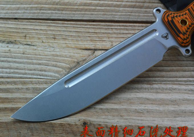 野牛轻骑兵战术直刀 全长:333mm 柄长:138mm 刃长:195mm 刃厚:6.0mm 刃宽:42mm(最宽处) 刃材:DC53 重量:500g(刀净重,不含鞘) 硬度:59-60HRC 柄材:橙黑夹层G10 刀鞘:美国进口Kydex 磨式:数控V磨 表面处理:精细石洗 热处理:真空油淬(增加晶体颗粒细腻度,具有最好的韧性) 包装:黑色礼品盒