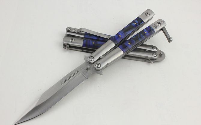 当前位置: 防身刀具 > 精美小刀 > 蝴蝶甩刀 > 蓝色9B4L蝴蝶甩刀