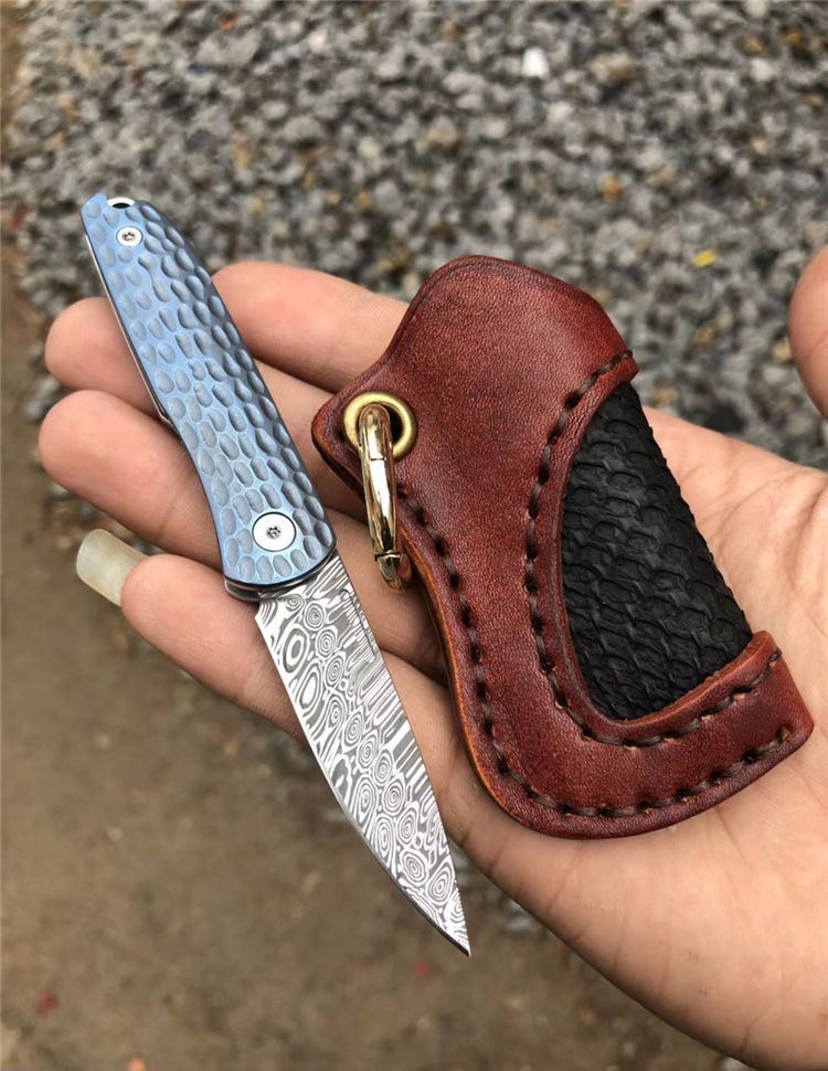 小花生瑞粉大马士革折刀 全长:130MM 刃长:55MM 刃宽:14MM 刃厚:2.5MM 净重:约49克(不含皮套) 刀刃硬度:60HRC 制作工艺:真空热处理,大师级工匠制作 刃材:火焰纹瑞典粉末大马士革钢 柄材:TC4钛合金 皮套:【意大利进口优质植鞣皮】纯手工缝线镶嵌鱼籽皮 小花生瑞粉大马士革折刀,刀刃为火焰纹瑞典进口粉末大马士革钢刀刃,手柄采用TC4钛合金,表面手工雕花,整体上档次,收藏送礼不二之选。整刀手感出色,各配件都是精密线切割开料,开合紧凑,装配工艺精湛!