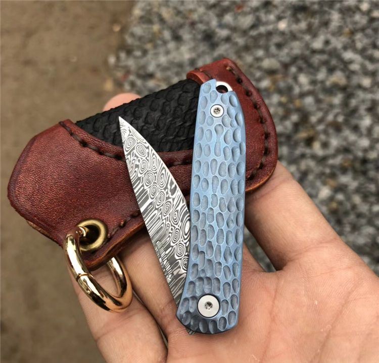 小花生瑞粉大马士革折刀,刀刃为火焰纹瑞典进口粉末大马士革钢刀刃,手柄采用TC4钛合金,表面手工雕花,整体上档次,收藏送礼不二之选。整刀手感出色,各配件都是精密线切割开料,开合紧凑,装配工艺精湛!