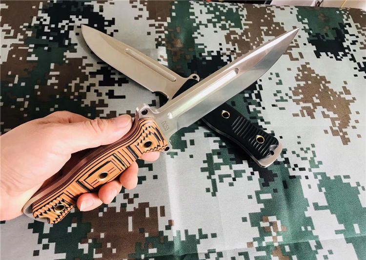 小号野牛轻骑兵战术直刀 全长:298mm 柄长:138mm 刃长:165mm 刃厚:5.8mm 刃宽:40mm(最宽处) 刃材:DC53 重量:420g(刀净重,不含鞘) 硬度:59-60HRC 柄材:橙黑夹层G10 刀鞘:美国进口Kydex 磨式:数控V磨 表面处理:精细沙光 热处理:真空油淬(增加晶体颗粒细腻度,具有最好的韧性) 包装:黑色礼品盒