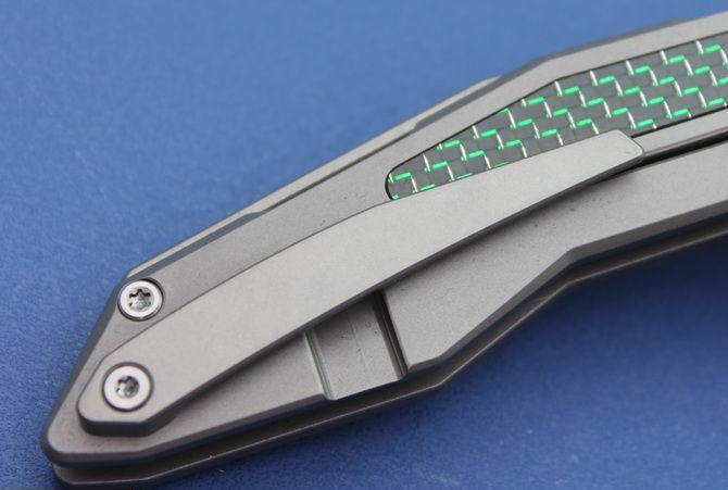 TS42牧马人折刀 全长:210mm 刃度:85mm 柄长:110mm 刀片厚度:4mm 刀片宽度:25.5mm 刀片材质:D2(房间100%,D2,可以测试) 处理材料:砂光拉丝 柄材:钛合金+碳纤 手柄处理:CNC 硬度:58-60HRC 系统:滚珠轴承系统 净重:130克