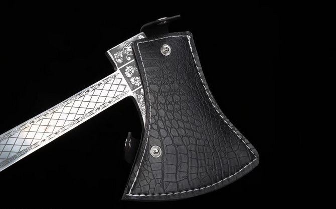 消防花斧破拆斧 高锰钢腐蚀雕花工艺 全长:36cm 宽:13cm 刃宽:10cm 柄长:30cm 厚:0.8cm 重:0.9kg