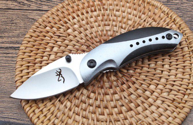 勃朗宁小企鹅折刀 全长:12.1mm 刃长:47mm 柄长:7.2mm 刃宽:22mm 刃厚:2.3mm 刃材:7Cr15Mov 重量:52g(含包装) 硬度:57HRC 表面:砂光 柄材:钢柄+铝 锁型:侧锁 其他:配纸盒LOGO掏空的 4款可选