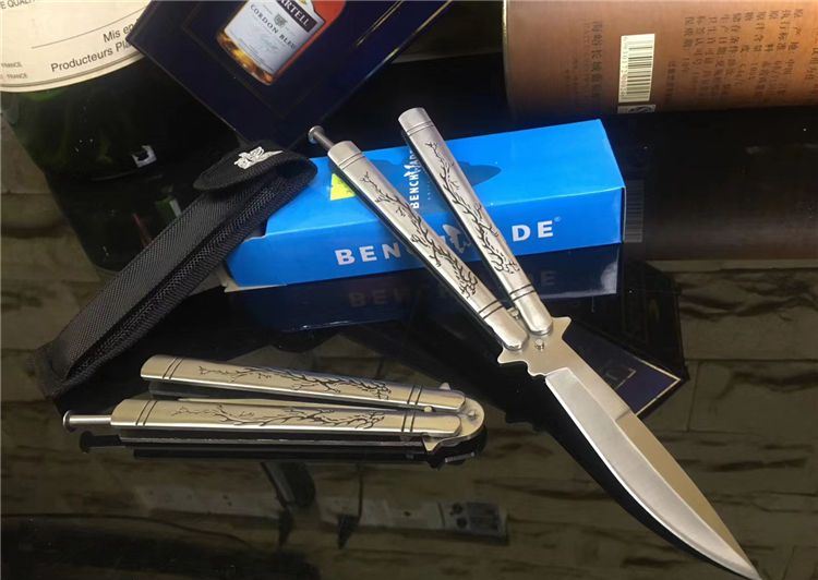 蝴蝶双龙甩刀 尖头、T头 全长:235mm 刃长:90mm 柄长:133mm 刃宽:18mm 刃厚:2.8mm 刃材:3Cr13Mov 重量:160g(含包装) 硬度:55HRC 表面:砂光 柄材:钢柄 锁型:甩刀 其他:配彩盒和尼龙套