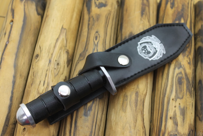其他:刃口锋利,手柄尾部有玻璃撞针,真皮刀套