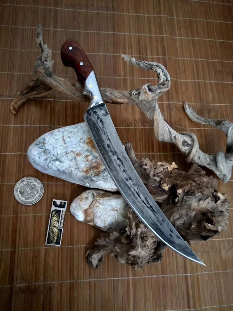潘大师傅精心精细手工打造西域弯刀,元老古式锻打蛤刃锋魂,百分百纯手工制作,假一赔十,进口俄罗斯高速钢精工打造