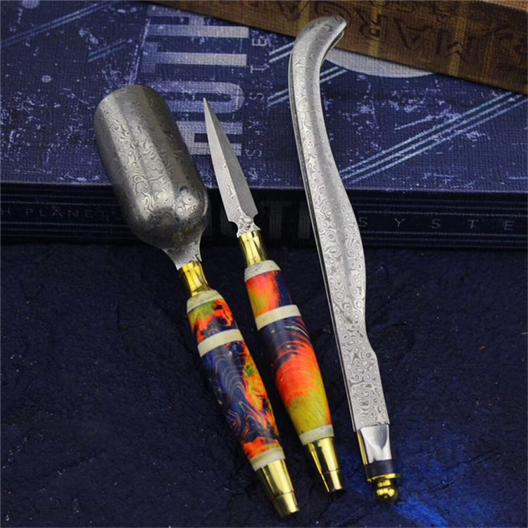当前位置: 防身刀具 > 户外刀具 > 大马士革直刀 > 聚客三件套装茶刀彩色版