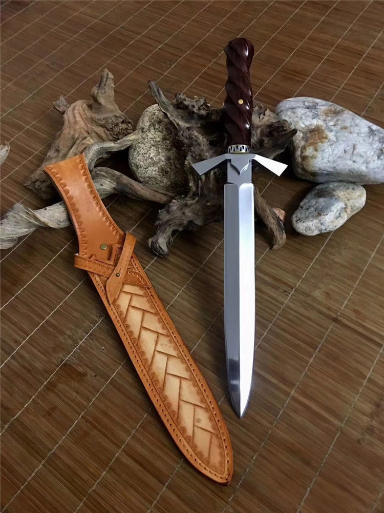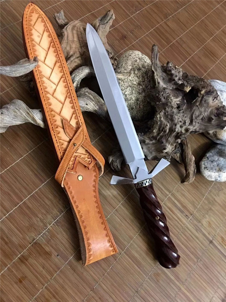 纯手工打造,手工头层牛皮套进口俄罗斯高速钢东南亚黄花梨木柄