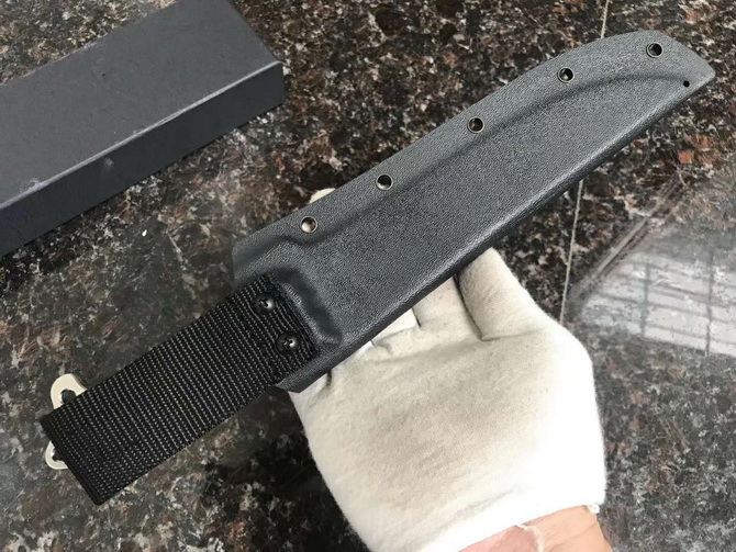 野牛暴怒直刀 全长:328mm 柄长:120mm 刃长:208mm 刃厚:5mm 刃宽:42mm(最宽处) 刃材:DC53 重量:500g(刀净重,不含鞘) 硬度:59-60HRC 柄材:黑夹层G10 刀鞘:美国进口Kydex 磨式:数控V磨 表面处理:精细石洗 热处理:真空油淬(增加晶体颗粒细腻度具有最好的韧性) 包装:黑色礼品盒