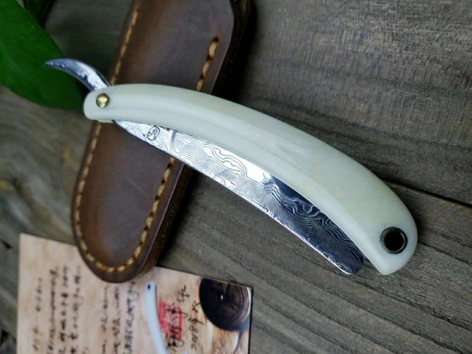 当前位置: 防身刀具 > 精美小刀 > 大马士革折刀 > 简师傅大马士革迷你白牛骨剃刀