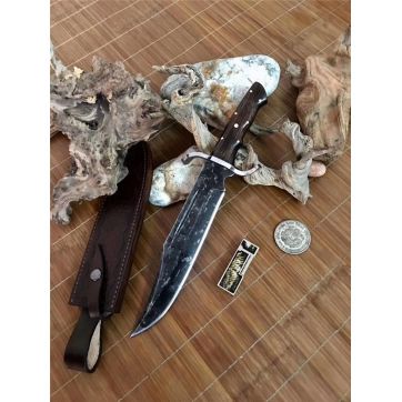 潘大师复古大博伊直刀 总长:36cm 刃长:24cm 厚度:0.5 百分百纯手工,进口俄罗斯高速钢打造非洲紫光檀老木木柄