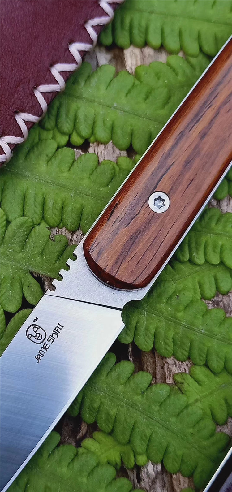 配置头层牛皮手工缝制皮套,头层牛皮尾绳,复古礼盒包装带简师傅正品LOGO保证盒子,非常实用一款水果刀,数量有限!不要错过哦