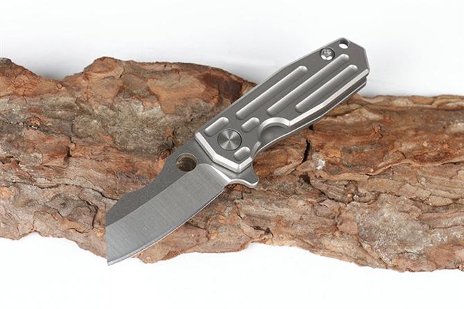 HY小剃刀快开折刀 品名:小折刀 全长:9.0cm 刃长:4.0cm 柄长:5.0cm 刃宽:1.6cm 刃厚:2.0mm 刃材:D2 重量:66g(含包装) 硬度:57-58HRC 表面:分蓝钛和钛钛两款,下单请注明 柄材:钛柄,内置轴承,快开类型 锁型:侧锁 其他:铁盒。可以扣在匙扣上,方便户外削切小用途