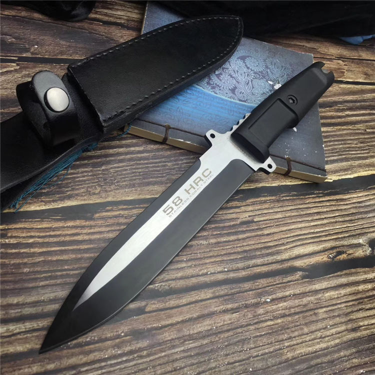 极端武力黑魂直刀 刃材:7CR13钢 全长:33CM 刃长:20CM 刃厚:0.5CM 刃宽:3.7CM 硬度:58HRC 柄材:热塑性弹性橡胶 刀鞘:ABS 重量:350克