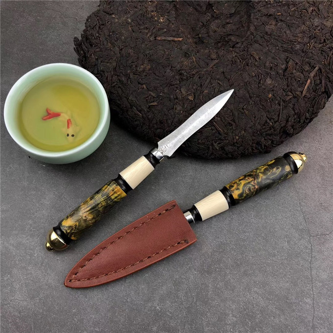 纯手工制作小茶针,进口稳定固化木材质搭配手柄、显德非常大气高档、每一把纹理天然而成都是独一无二的,钢材为//进口大马士革无芯钢70层,硬度59HRC,泡茶人士首选,送礼高端大尚,数量有限先到先得